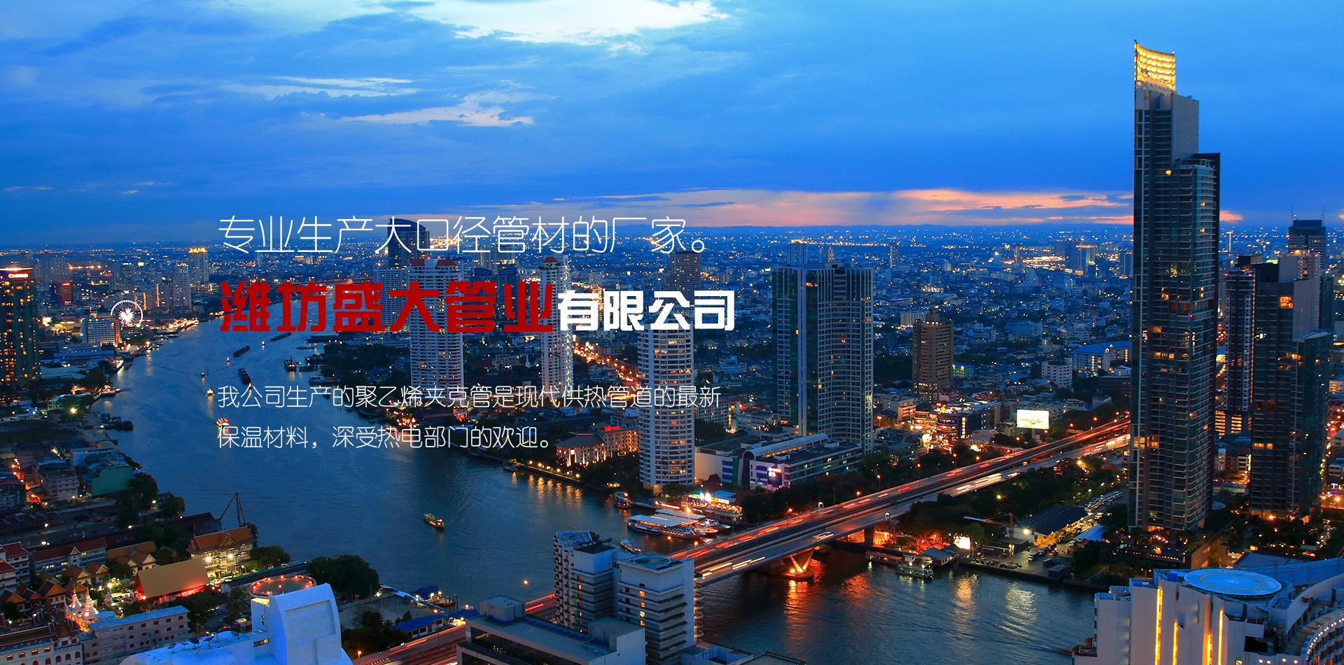 濰坊盛大管業(yè)有限公司坐落在美麗的風(fēng)箏之都——濰坊,是一家專(zhuān)業(yè)生產(chǎn)大口徑管材的廠(chǎng)家。