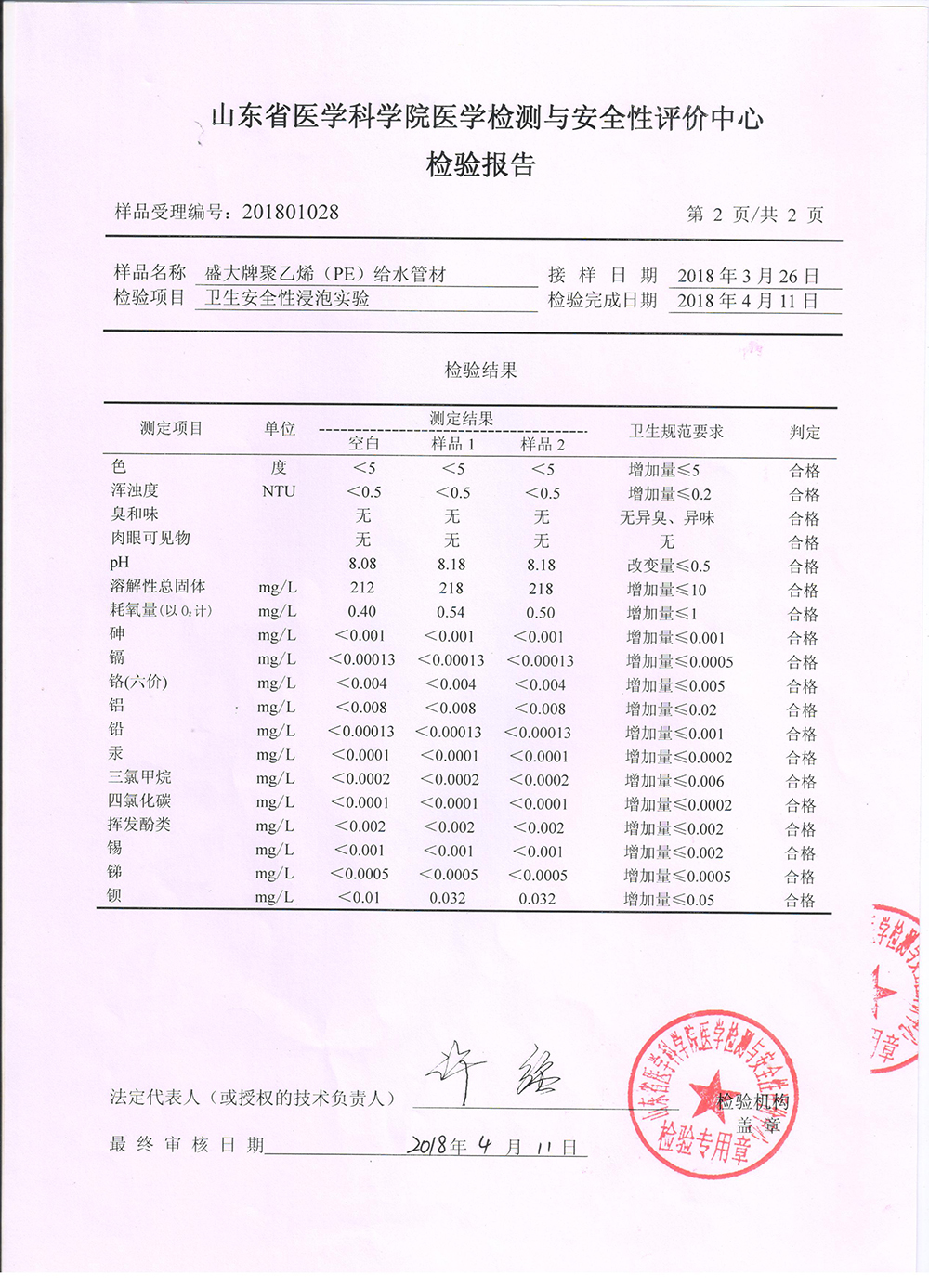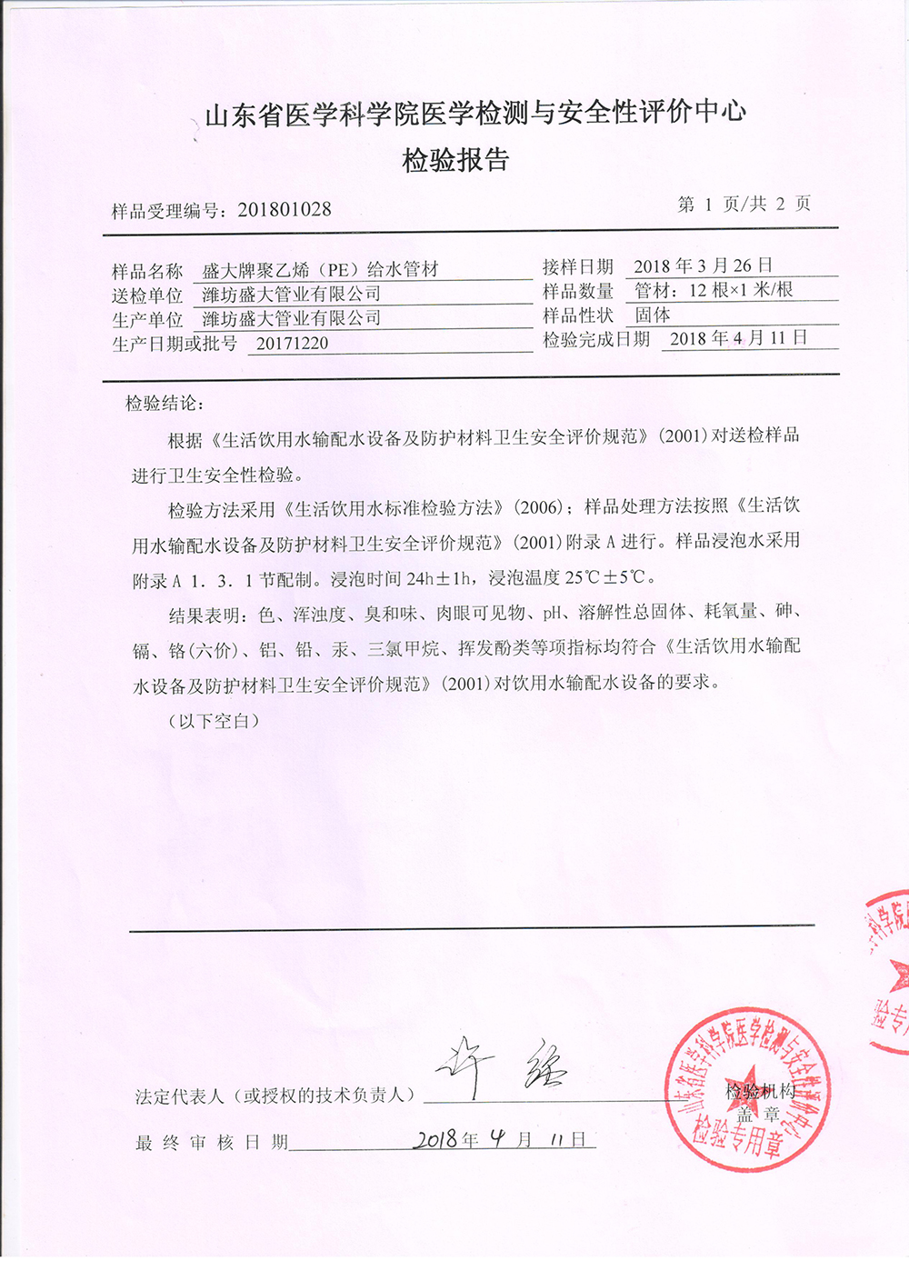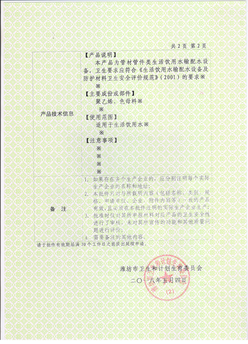 • 衛(wèi)生許可批件