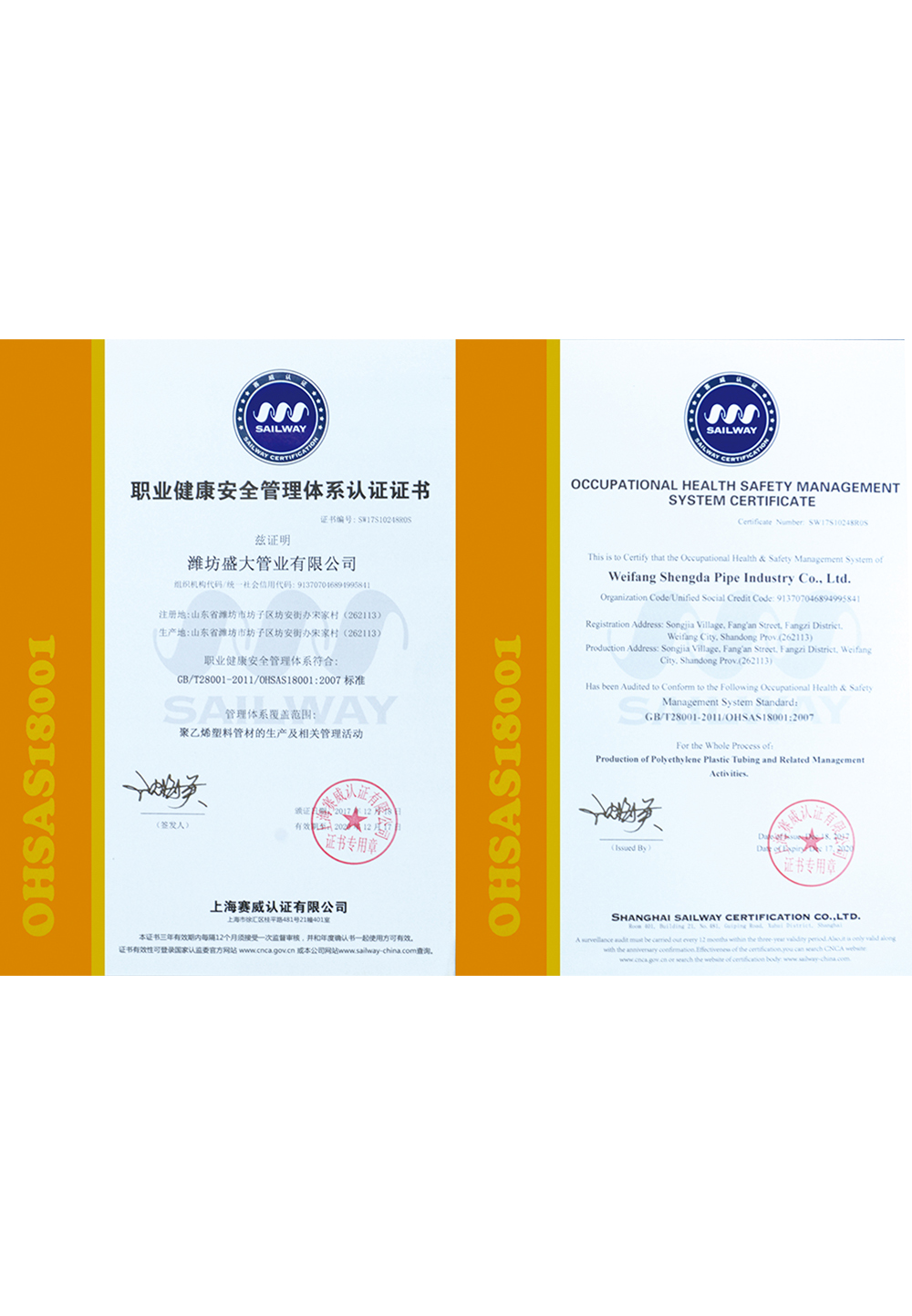 • 職業(yè)健康安全管理體系認(rèn)證證書